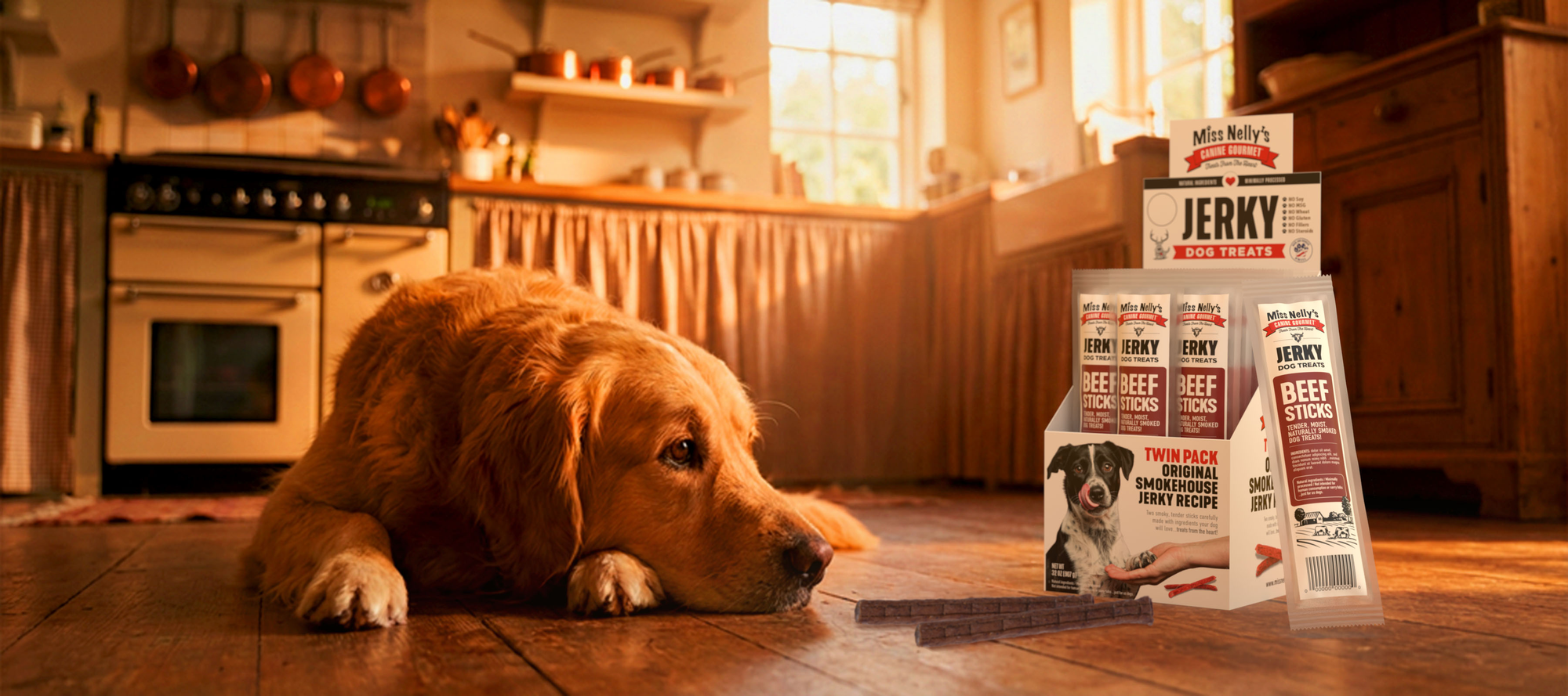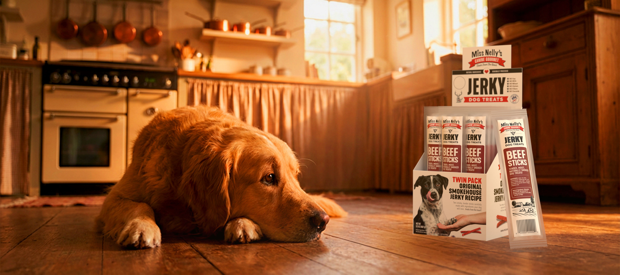 At Miss Nelly’s Canine Gourmet, love and minimal processing form the heart of everything we do. Since 2012, we’ve been crafting dog jerky treats the right way—slow-roasting real meat for hours using time-honored methods to develop a natural wood-smoked flavor and a satisfying, chewy texture. We avoid chemical preservatives, MSG, and synthetic flavors, choosing simple, carefully selected ingredients that retain their natural goodness. The result is a clean, minimally processed treat we’re proud to feed our own dogs.