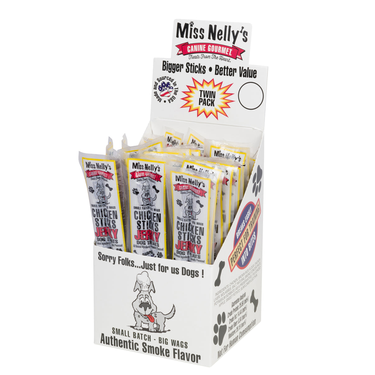 Miss Nelly's Chicken Sticks Jerky Dog Treats – 24-Pack (1.27 oz Twin Packs)